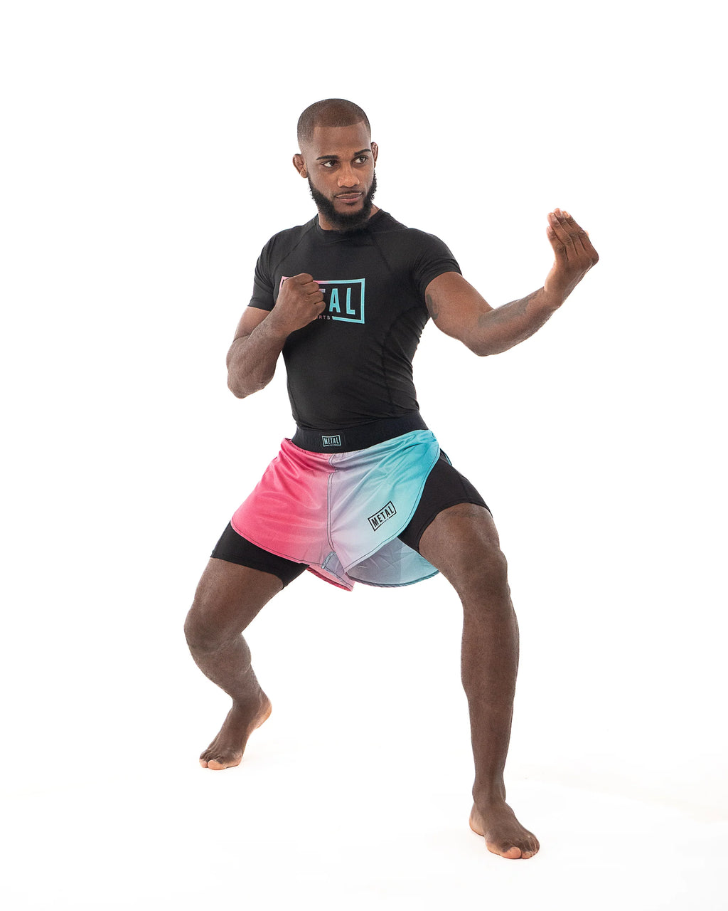 Faisant partie de la gamme textile Metal Boxe, ce rashguard associe sobriété et efficacité. Disponible en quatre coloris – beige, Miami Vice, noir et olive – il s’accorde parfaitement avec un short de MMA ou une tenue complète Metal Boxe.